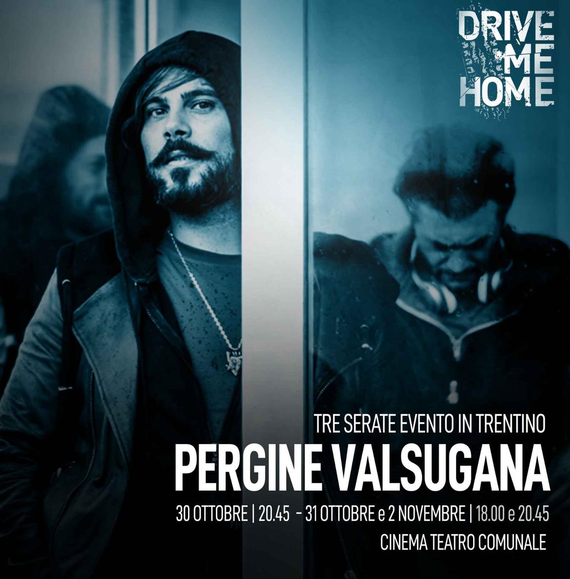 Il film è uscito nelle sale italiane il 26 settembre, ma il pubblico trentino ha un'altra occasione per vedere "Drive me home": l'appuntamento è al Cinema teatro comunale di Pergine Valsugana con tre serate evento, durante le quali saranno proiettati dei prequel che forniscono alcuni spunti interessanti sulla storia dei protagonisti. Il 30 ottobre l'appuntamento è alle 20.45, in sala ci sarà anche il regista Simone Catania a dialogare con il pubblico, mentre il 31 ottobre e il 2 novembre saranno due le proiezioni, alle 18 e alle 20.45.
