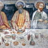Con docile fedeltà, gli artisti di tutte le epoche partono dalle pagine evangeliche per illustrare l’episodio dell’Ultima Cena, innumerevoli volte replicato perché fulcro della fede cristiana, nell’istituzione dell’Eucaristia. E tuttavia senza rinunciare, spesso, a un tocco “personale”, a un riferimento concreto, territoriale, caratteristico del tempo in cui operano, immediatamente allusivo per i fedeli a cui l’opera è destinata. Così che nel “menù” della Cena del Signore, si ritrovano alcuni alimenti costanti, ma anche, di volta in volta, nuove cibarie, inattesi ingredienti. Per lo più dalla forte valenza simbolica.