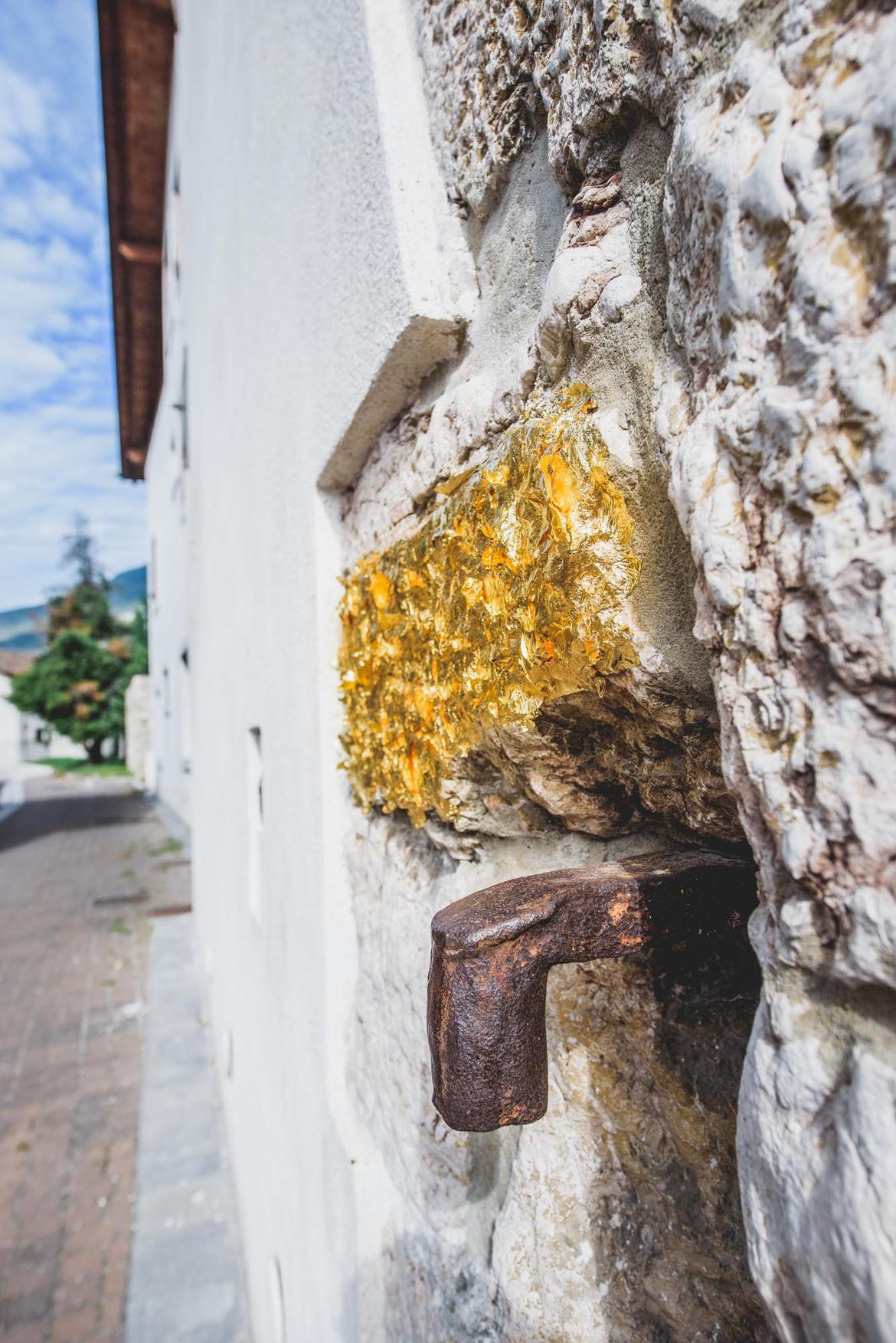 "Abbiamo pensato a un intervento che potesse dare dignità e contemporaneamente segnalare l’esistenza di questa demarcazione - spiega l'artista -. Abbiamo pensato all’oro, alla speranza di chi varca un confine, al “tesoro” che porta una persona quando attraversa una demarcazione, al denaro che serve per uscire da uno spazio familiare (conosciuto, rassicurante) per entrare nella terra dell’incertezza (Progetto di Flavio Marzadro con fotografie di Matteo De Stefano, a cura di Portobeseno).