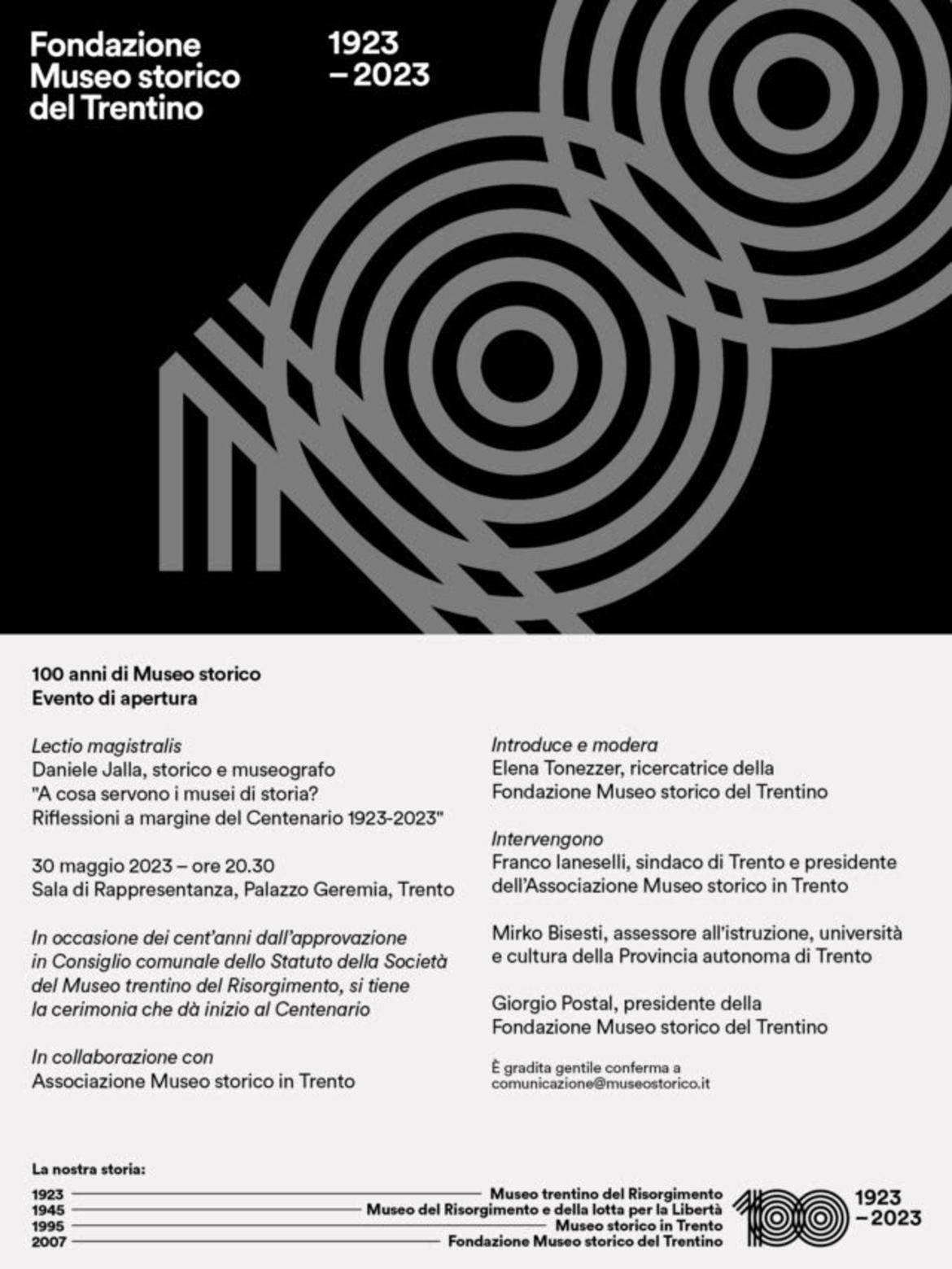 Alla serata, introdotta e moderata da Elena Tonezzer, responsabile del settore di storia della città della Fondazione, interverranno Franco Ianeselli, sindaco di Trento e presidente dell’associazione Museo storico in Trento, Mirko Bisesti assessore provinciale all’istruzione, università e cultura, e Giorgio Postal, presidente della Fondazione Museo storico del Trentino.
