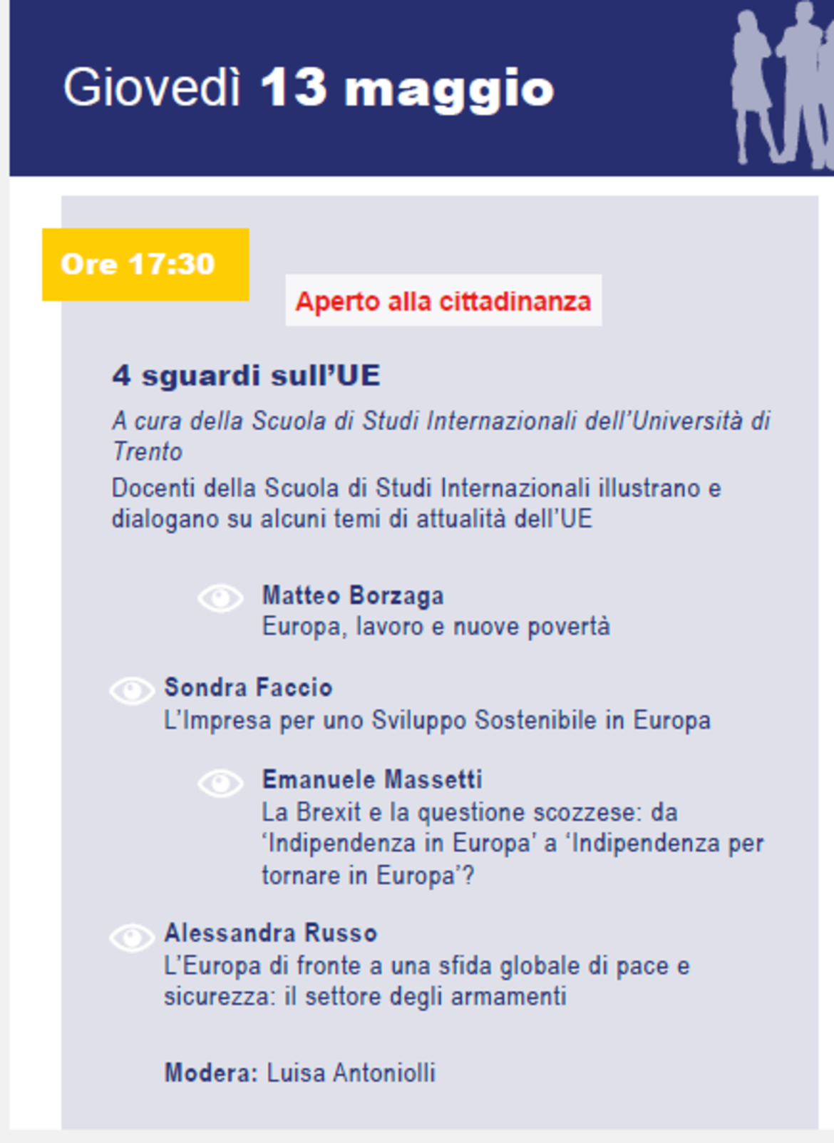 I docenti della Scuola di Studi Internazionali dell'Università di Trento presentano vari temi.