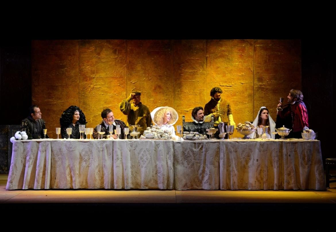 Il regista però, entrato in rotta di collisione con il produttore, se n’è andato. Per l’intero spettacolo quindi ci sarà un dentro e fuori dal testo shakespeariano. Inoltre, l’adattamento vede una sorta di ribaltamento dei ruoli, una Bisbetica dalla parte della donna: è infatti l’irascibile Caterina-Nancy Brilli a tirare le fila della vicenda, in nome anche di un’età più matura rispetto a quella di Petruccio, il co-protagonista cui è riservata una parte più defilata.