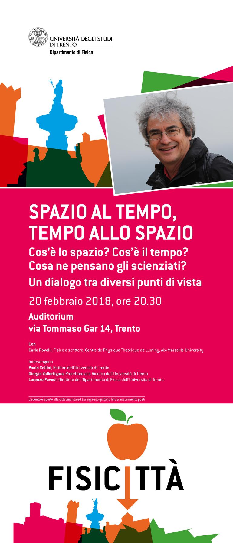 - Carlo Rovelli, Fisico teorico conosciuto per i suoi contributi alla gravità quantistica. Professore ordinario di Fisica teorica all'Università di Marsiglia (Francia). Ha studiato a Bologna, Padova e Trento. Ha ricevuto numerose onorificenze e premi, tra cui il premio internazionale Xanthopolous nel 1995 per i suoi studi sulla natura dello spazio e del tempo. È autore di oltre 250 pubblicazioni scientifiche, due trattati tecnici sulla gravità quantistica e di libri per il largo pubblico. Il suo libro "Sette brevi lezioni di fisica" è stato tradotto in 41 lingue e ha venduto oltre un milione di copie nel mondo. Il suo recente libro "L'ordine del tempo" è stato il saggio più venduto in Italia nel 2017.