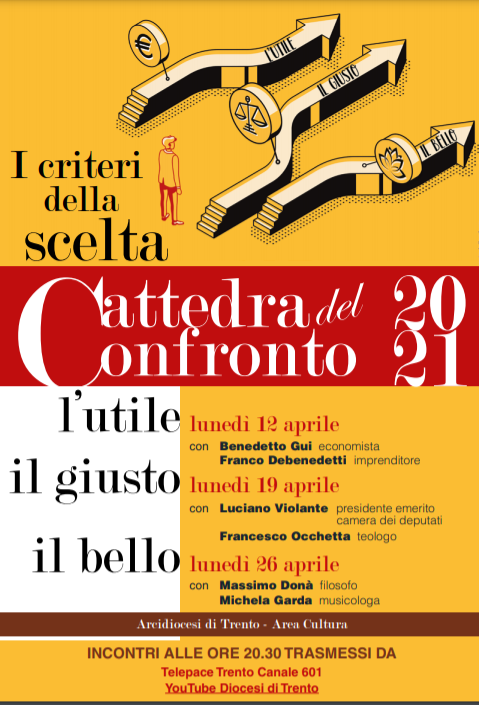 Sono le domande-guida al centro della Cattedra del Confronto: dopo un anno di sospensione causa pandemia, la proposta culturale della Chiesa trentina ritorna, seppure in versione telematica, ad animare le serate di tre lunedì successivi di aprile: 12, 19 e 26, alle ore 20.30.