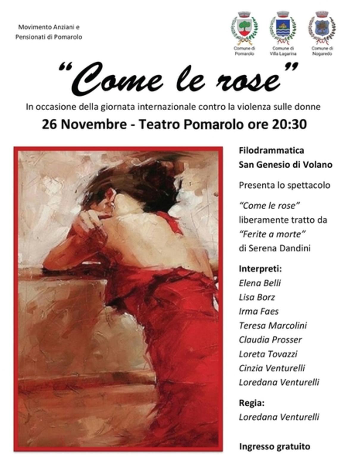 Lo spettacolo è proposto dall’Amministrazione comunale in collaborazione con il Movimento Anziani e Pensionati di Pomarolo in occasione della giornata internazionale contro la violenza sulle donne.