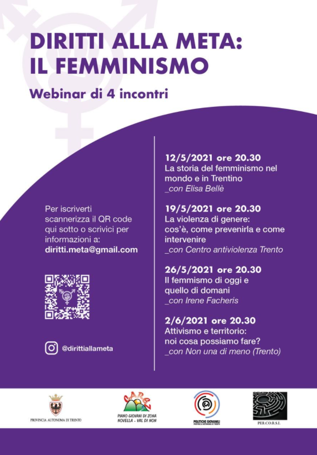 Una serie di incontri nata dal dialogo tra quattro ragazzə del Comune di Novella, sostenuta dal Circolo Per.Co.R.S.I. e finanziata dal Piano Giovani di Zona "CAREZ"Diritti alla meta vuole essere un progetto dedicato a tuttə coloro, non solo giovani, che vorrebbero avvicinarsi al mondo del femminismo e ai suoi temi più importanti, ma è anche rivolto a chi vorrebbe approfondire maggiormente le sue conoscenze sull’argomento.