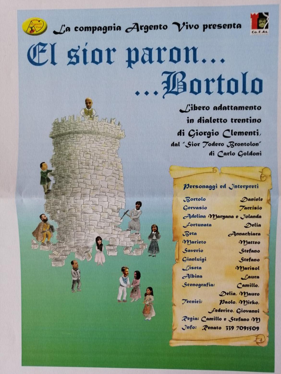 È una commedia in tre atti scritta in dialetto e ambientata in paese del Trentno agli inizi del 1900. Si richiama alla commedia di Carlo Goldoni "Sior Todero brontolon", i caratteri dei personaggi del '700 goldoniano non appartengono solo a quel periodo, ma rivivono anche agli inizi del '900. Lo spettacolo ruota attorno al personaggio del sior Brontolo... scusate... del sior Bortolo, vecchio brontolone, avaro, ostinato e dispotico che, credendosi "paron" della famiglia e di tutto, pensa di poter disporre anche della scelta di vita degli altri.
