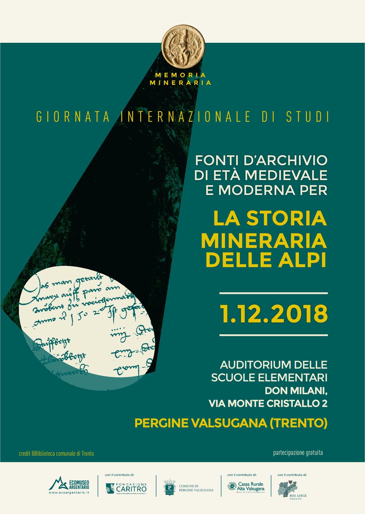 Se siete curiosi, vi invitiamo a scoprire con noi l’antica storia mineraria delle Alpi, ricostruita attraverso lo studio dei documenti conservati negli archivi: specialisti di ambito regionale ed extra-regionale ci racconteranno le loro ricerche, permettendoci un confronto con quanto sappiamo sul nostro territorio.