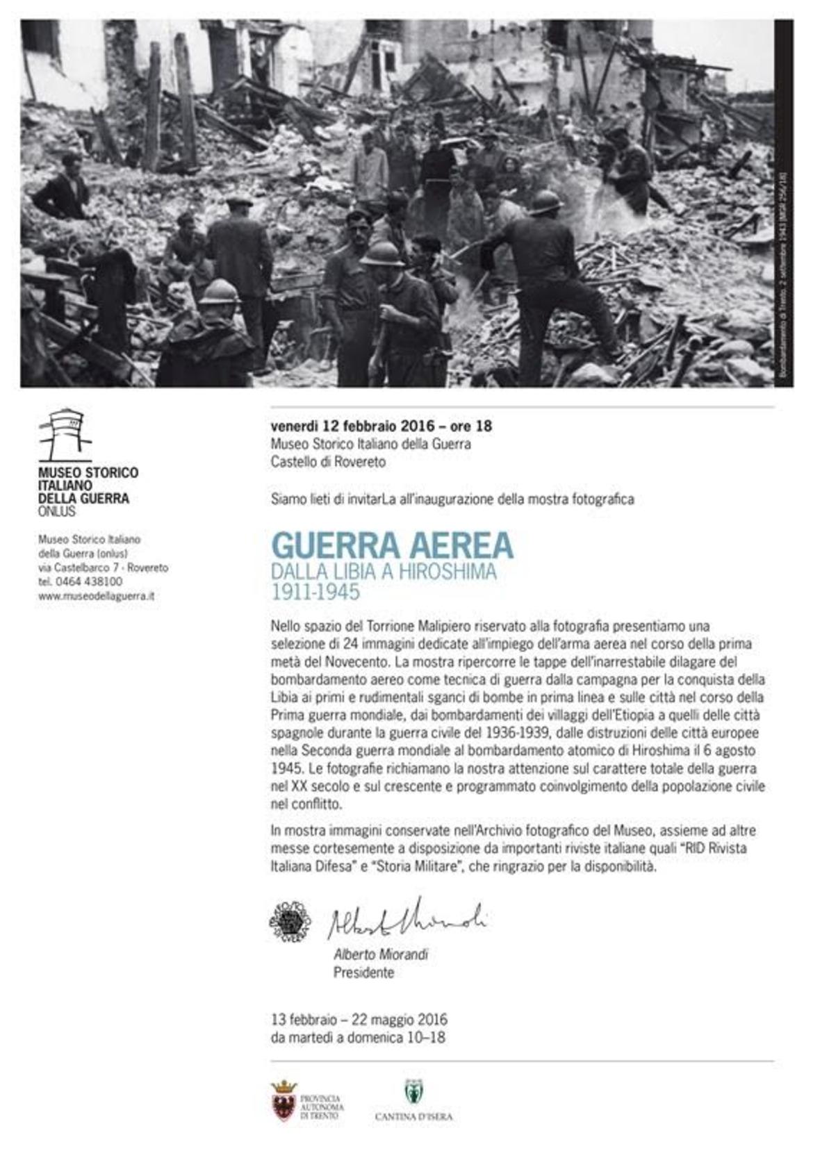 Nello spazio del Torrione Malipiero riservato alla fotografia si presenta una selezione di 24 immagini dedicate all’impiego dell’arma aerea nel corso della prima metà del Novecento.