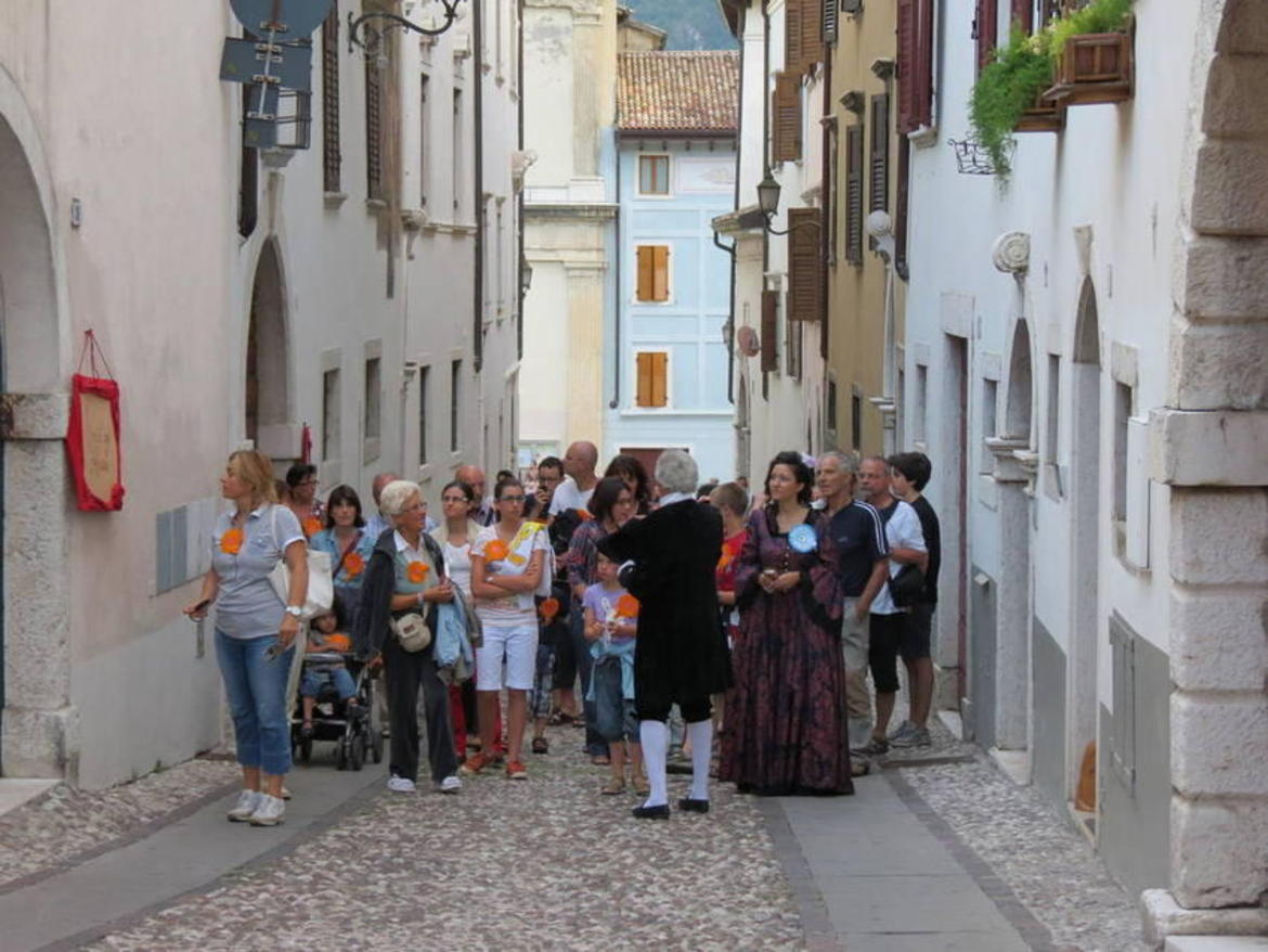 Passeggiare tra le vie acciottolate del centro storico di Ala, uno dei più eleganti del Trentino, accompagnati da nobili in costume settecentesco che narrano dell'epoca in cui la produzione di velluto di seta rese celebre la città, scoprirne le affascinanti dimore che nel passato ospitarono regnanti e artisti da tutta Europa (tra cui Mozart) e poi concludere con un aperitivo in un luogo suggestivo del centro storico..tutto questo ti aspetta ad Ala, dalla primavera all'autunno, ogni sabato nel tardo pomeriggio.