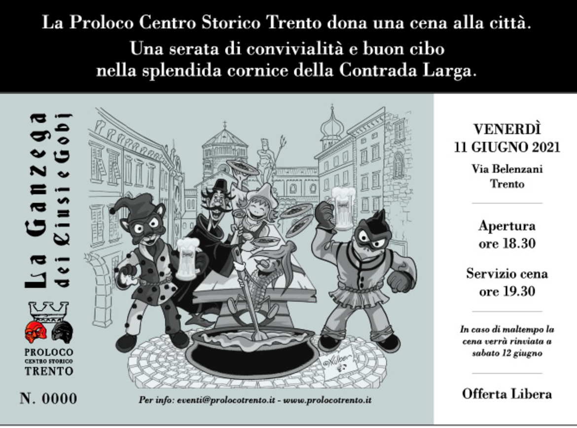 Gestita dalla Proloco Centro Storico di Trento, la Ganzega avrà anche un risvolto solidale, visto che una parte della quota di iscrizione alla cena verrà devoluta in beneficenza all’associazione che si aggiudicherà il premio “Ganzega 2021” per un progetto solidale dedicato ai ragazzi under 18.