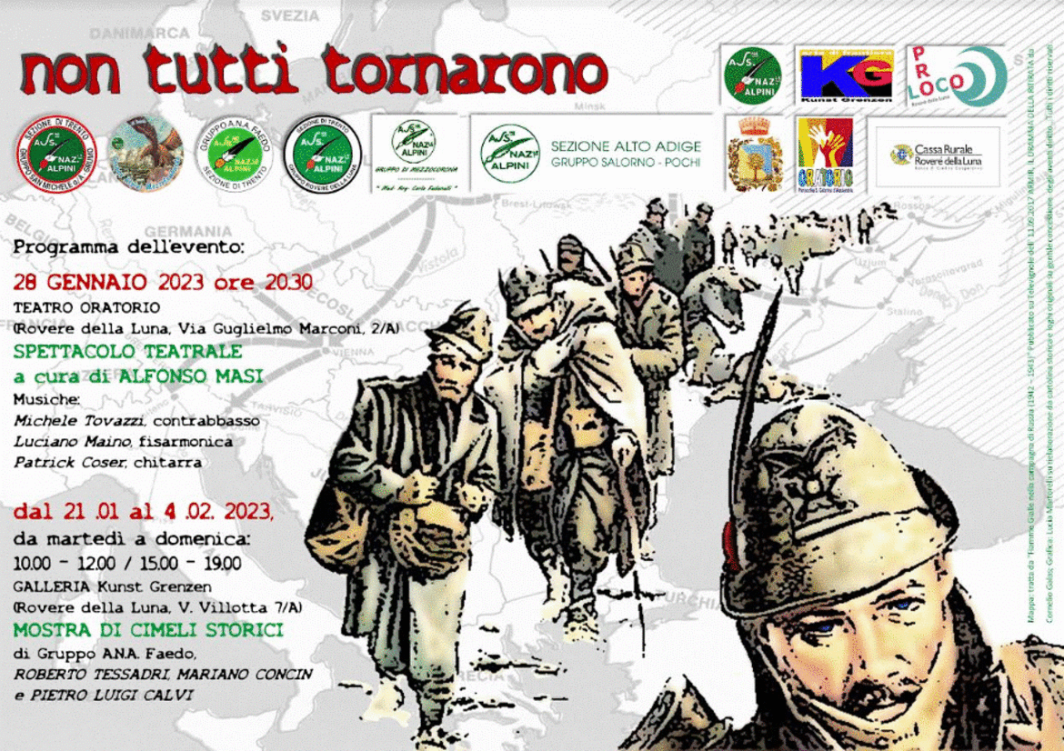 Il progetto memorialistico "Non tutti tornarono" è realizzato a cura dell'Associazione culturale Kunst Grenzen-Arte di frontiera aps tramite il Presidente Sig. Gentile Polo, in collaborazione con le sezioni degli Alpini della Piana Rotaliana e la sezione Alto Adige gruppo Salorno - Pochi, la Pro Loco di Rovere della Luna, il Gruppo Oratori Parrocchia di Santa Caterina d'Alessandria, Cassa Rurale e Comune di Rovere’ della Luna, e con l'attore Alfonso Masi.