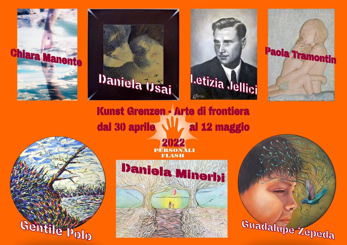 La Galleria Kunst Grenzen - Arte di Frontiera di Rovere della Luna apre le porte al pubblico con le "Personali Flash" di sette artisti: LETIZIA JELLICI, CHIARA MANENTE, DANIELA MINERBI, GENTILE POLO, PAOLA TRAMONTIN, DANIELA USAI, GUADALUPE ZEPEDA.