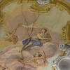 Il salone centrale del piano nobile, pensato per funzioni di rappresentanza e ancor oggi utilizzato per concerti di musica classica ed attività sociali, e per le prove del glorioso Coro della SOSAT – che nel palazzo ha anche la propria sede – venne affrescato dai pittori Carlo Spaventi e Francesco Marchetti con motivi che stupiscono l’osservatore per gli arditi sfondamenti prospettici e per la ricchezza di elementi simbolici tra cui mappamondi e sfere armillari, emblemi delle arti e della guerra e grandi stemmi nobiliari. Al centro della volta a botte è raffigurata una splendida Allegoria della Musica. Al Marchetti sono attribuite anche le 32 tele della contigua sala, dedicate agli Dei dell’Olimpo.