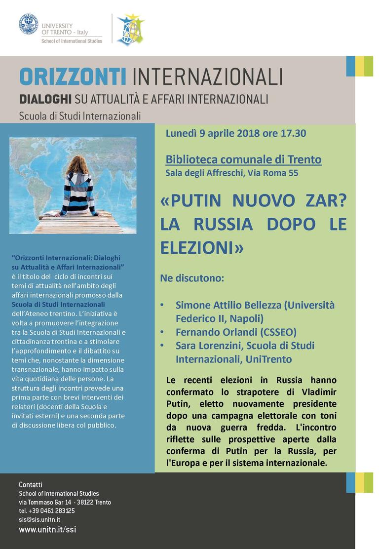 Nell’incontro dibattito si discuterà sugli scenari che la conferma di Vladimir Putin apre per la Russia, per l’Europa e per il sistema internazionale.