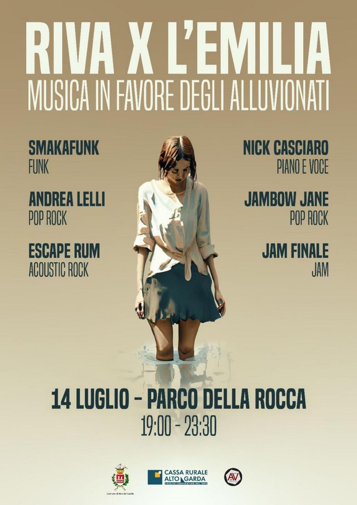 A partire da un’idea del gruppo rivano Jambow Jane, si sono uniti il Comune di Riva del Garda, i vigili del fuoco di Riva del Garda, la Cassa Rurale Alto Garda-Rovereto, le associazioni Art Vision e Cuore e territorio e la Croce Rossa di Forlì e di Cesena per realizzare un concerto a favore delle vittime della disastrosa alluvione dello scorso maggio in Emilia-Romagna, le cui gravissime conseguenze sono ancora lontane dalla soluzione. A esibirsi, dalle 19 fino circa a mezzanotte, saranno gli Smakafunk, Andrea Celli, Escape Rum, Nick Casciaro e gli stessi Jambow Jane, con jam session finale.