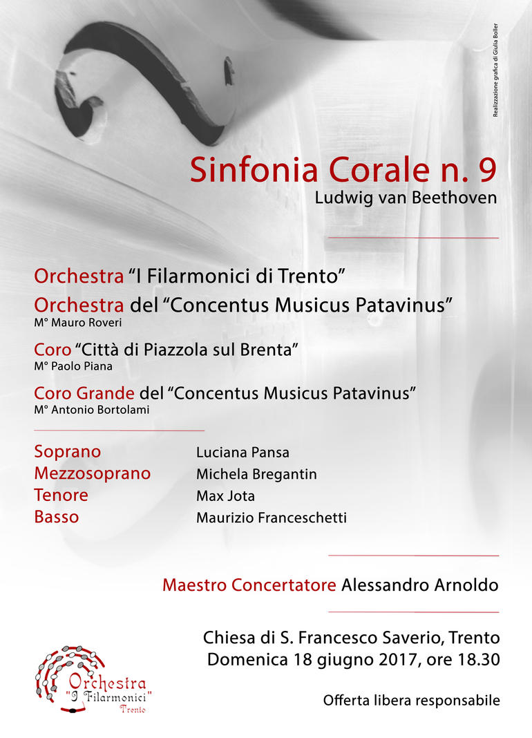 Per il Finale della Sinfonia, su testo dell’ode “An die Freude” (“Alla gioia”) di Friedrich Schiller - sono inoltre chiamati quattro solisti: il soprano Luciana Pansa, il mezzosoprano Michela Bregantin, il tenore Max Jota e il basso Maurizio Franceschetti, insieme al Coro “Città di Piazzola sul Brenta”, preparato dal maestro Paolo Piana.