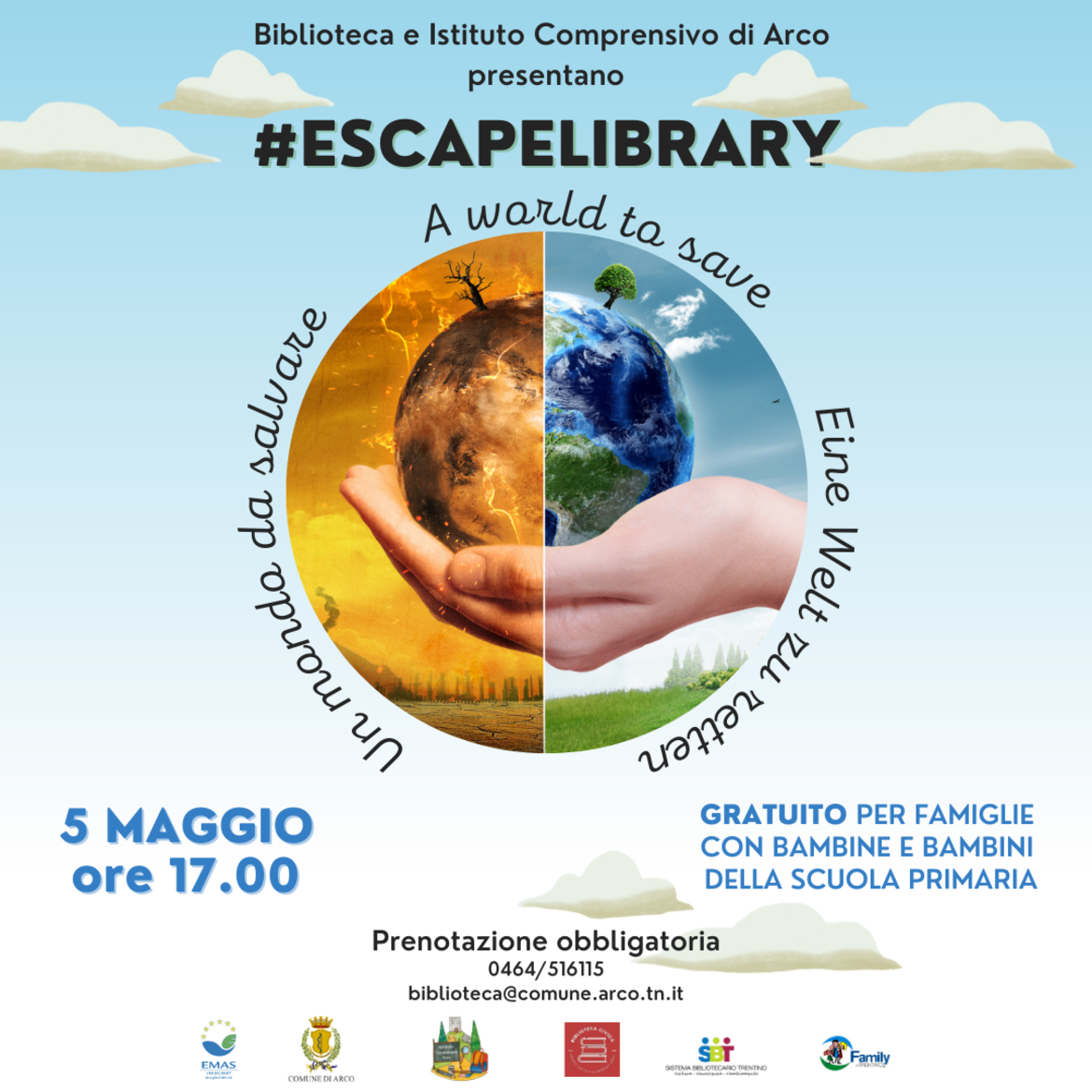 L'iscrizione è obbligatoria chiamando il numero 0464/516115 o scrivendo a biblioteca@comune.arco.tn.it