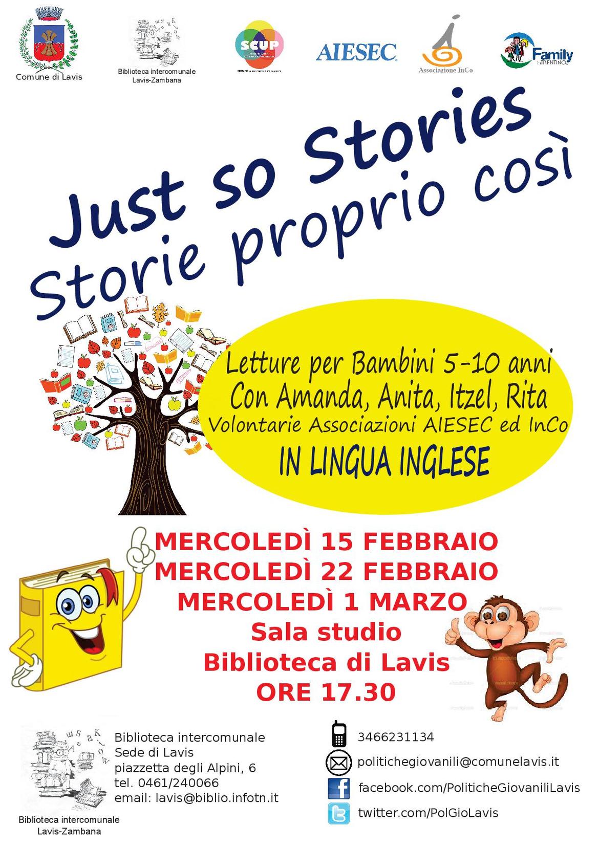 Le letture animate in lingua inglese saranno curate da Amanda, Anita, Itzel, Rita, volontarie Associazioni AIESEC ed InCo.