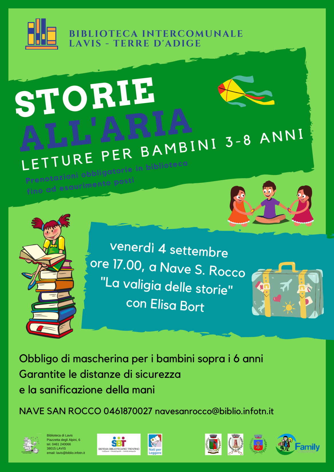 Prenotazioni obbligatorie in biblioteca (tel.0461 870027 - email: navesanrocco@biblio.infotn.it) fino ad esaurimento posti. Verranno garantite le distanze di sicurezza e la sanificazione delle mani. Per i bambini sopra i 6 anni è obbligatorio l'uso della mascherina.