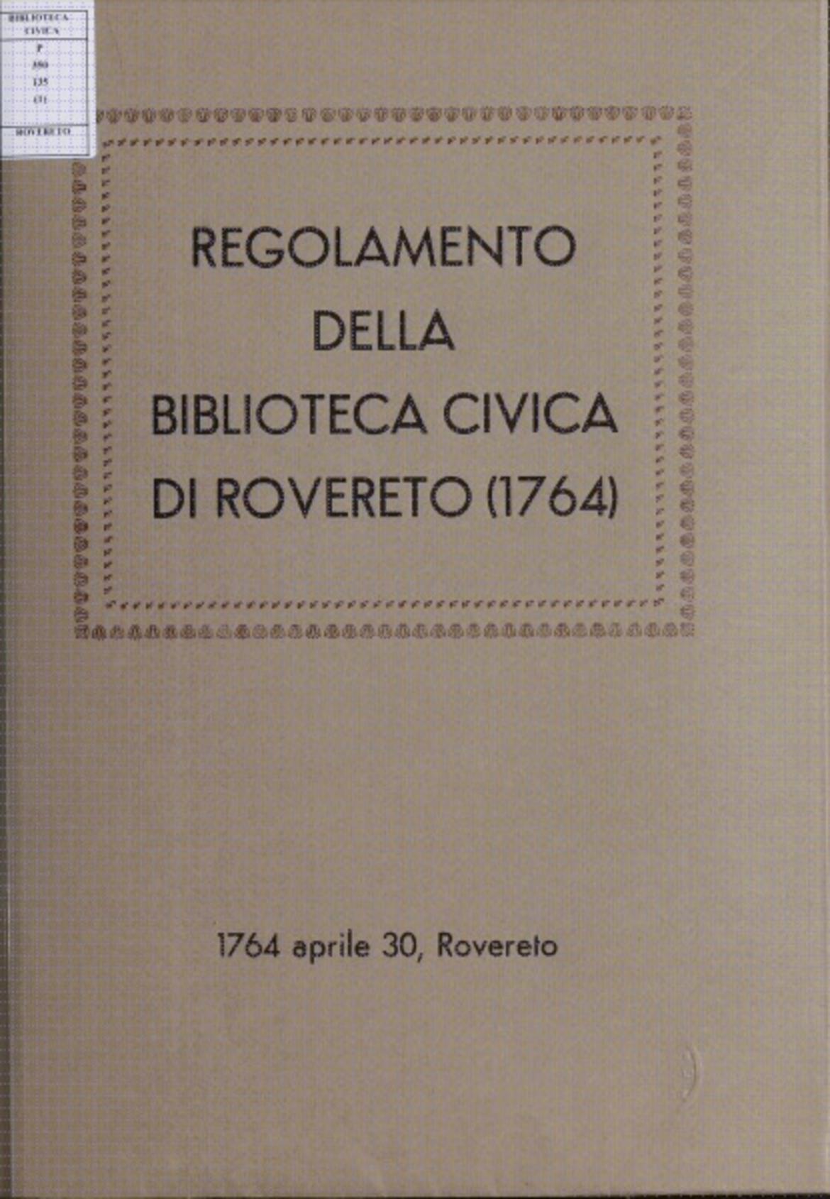 Presentazione degli antichi statuti della Biblioteca civica di Rovereto (1764)