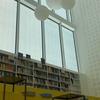 Il volume è sospeso su una fascia vetrata che accentua la continuità tra la piazza esterna e l’atrio interno, esaltandone la visibilità.