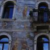 Le due case, impostate su un tracciato poligonale e sorrette dai massicci pilastri del portico, presentano un complesso ciclo pittorico cinquecentesco che si svolge su diversi piani
