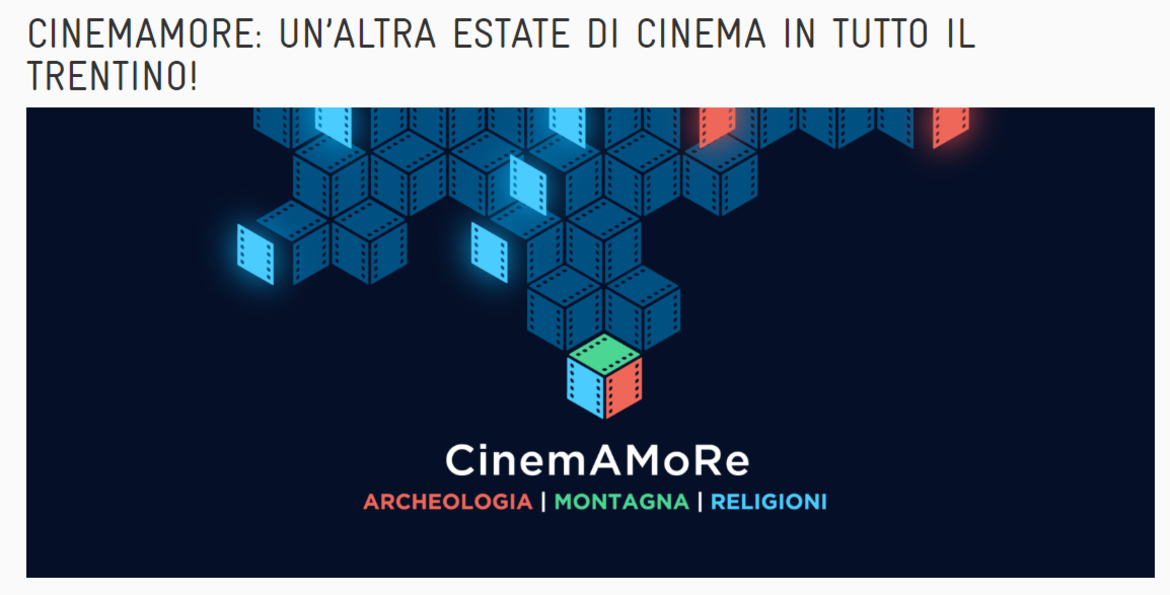 Arriva l’estate, ritorna CinemAMoRe, la rassegna cinematografica promossa dall’Assessorato alla Cultura della Provincia autonoma di Trento e curato dal Trento Film Festival, dalla Rassegna Internazionale del Cinema Archeologico e dal Religion Today Film Festival.