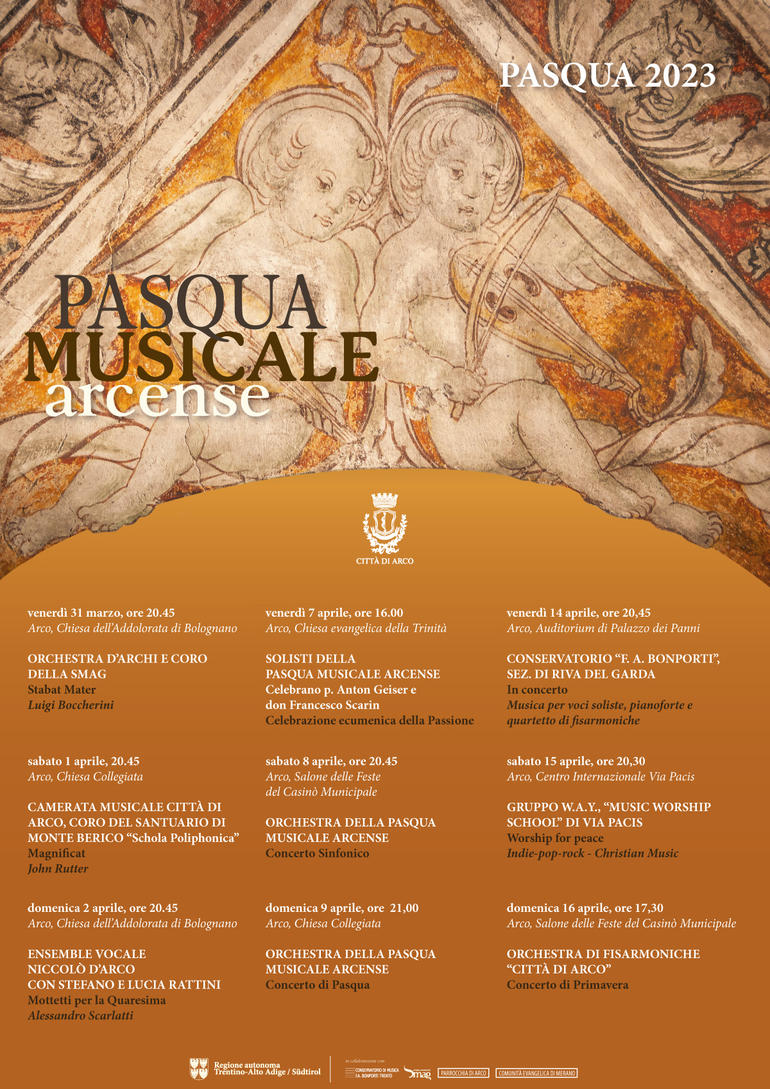 L’edizione 2023 propone nove concerti, in sedi diverse, di realtà locali e dell'Orchestra internazionale della Pasqua musicale arcense. Il cuore della manifestazione è costituito come sempre dai due concerti del sabato e della domenica di Pasqua, con la presenza straordinaria del violinista Gustavo Surgik, solista presso la Stuttgart Staatoper, di Fabian Schröder, cornista presso la Stuttgartrt Philarmoniker, e di Charlotte Thiele, giovanissima violinista attualmente residente presso la Bad Reichenhaller Philharmoniker.