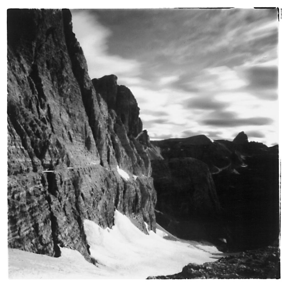 Immagini scattate senza alcuna lente e nessun mirino, solo un piccolo foro attraverso cui la luce ha impressionato la pellicola, per cogliere, senza filtri tutta la drammatica bellezza del territorio dolomitico, teatro involontario della Prima Guerra Mondiale.