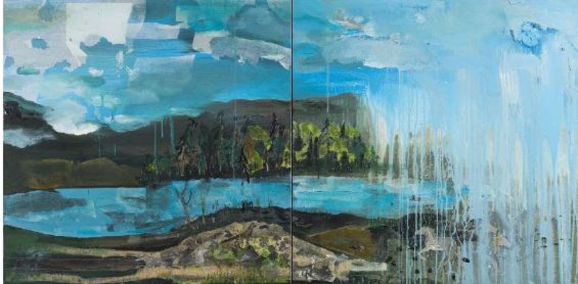 Attese, spostamenti e richiami intitolano le opere; la serie dei “Laghi di carta” e alcune opere su tela ci accolgono in galleria, per culminare nel dittico “Verso la caduta del cielo”. Al piano sotterraneo, grandi opere su carta si alternano a lavori su legno di recupero e alla tela “Acqua che vuoi diventare”, tra movimenti fluidi e cromatismi rarefatti. La pittura e il collage ricoprono la superficie di quasi tutte le opere, originando interessanti contrasti materici.