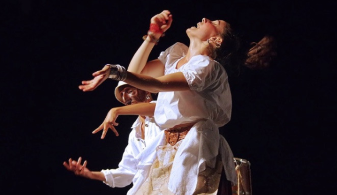 Protagonisti del racconto sono due Maschere viaggianti: la servetta Riciulina e il vagabondo Zane de Qua. Una spiaggia simbolica, sulla quale gli alberi sono tre tamburi brasiliani Atabaques, i ruscelli sono foglie di Agave africano infilati in fresche brocche d’argilla, le conchiglie sono file di campanelli per le danze dell’India Meridionale, il mare è il fruscio di un bastone della pioggia australiano e il vento è lo sventolare di lunghi drappi indonesiani bianchi, simboli orientali della purezza del viaggio verso l’al-di-là.