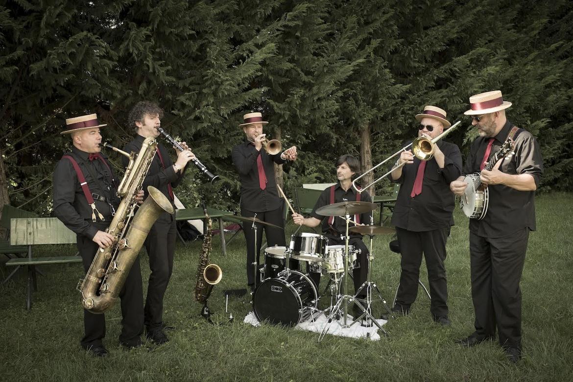 Al termine del sentiero, circondati dagli alberi e in un vero e proprio “teatro naturale”, la Tiger Dixie Band continua il concerto con la musica dei più noti jazzisti del Ventesimo secolo e del primo Dopoguerra, tra singolari arrangiamenti, abilità tecniche e improvvisazioni.