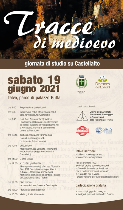 Evento patrocinato da: Ordine degli Architetti Pianificatori, Paesaggisti e Conservatori della Provincia di Trento, Istituto Italiano dei Castelli Onlus - Sezione Trentino Alto Adige e AIDIA – Associazione italiana donne ingegneri e architetti, Sezione Trento.