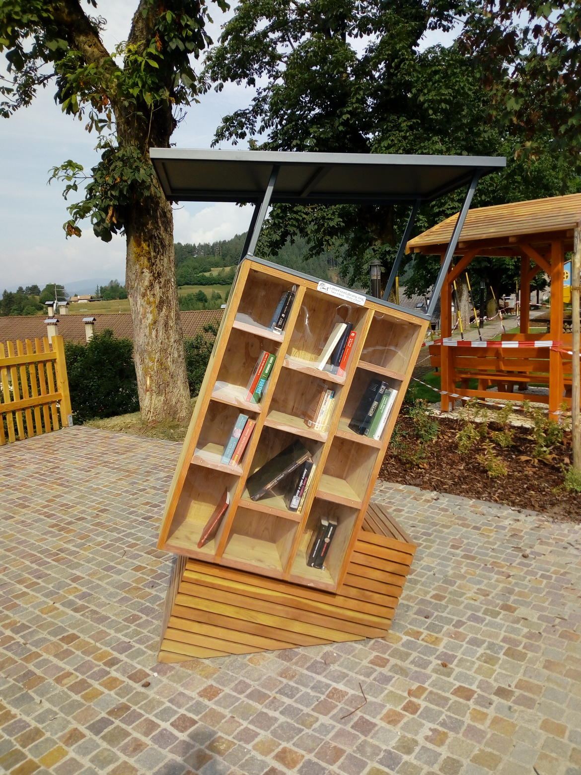 Questo bellissimo contenitore, progettato dalla studentessa Claudia Bosetti, realizzato dagli operai del Comune di Tesero e gestito dalla Biblioteca comunale, offre a tutti la possibilità di regalare pagine già lette, di condividere letture con ignoti interessati.