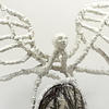 Dall’oggetto donato da Alberto Gambale, Daniela Carletti fa nascere una persona che libra delle enormi ali nell’aria. Sembra proteggere l’automobile o portarla via con sé verso altri lidi e altri mondi. Il bianco delle ali e del volto contrasta con l’appoggio, quasi a voler far notare di più le due strutture che comunque intrecciano un dialogo, un’amicizia. Sembra che tutto si sia fermato per qualcosa o qualcuno che non riusciamo a vedere, come se qualcosa o qualcuno rimanesse fuori dalla nostra visuale. Sembra un’attesa!