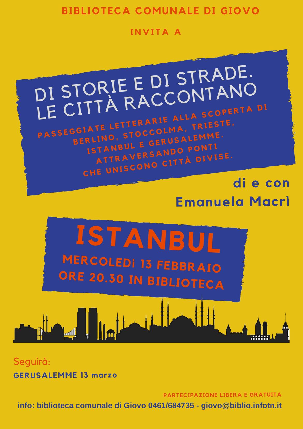 Quarto dei cinque incontri dedicati alle città di Berlino, Stoccolma, Trieste, Istanbul e Gerusalemme.