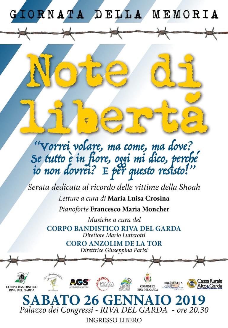 Per la Giornata della Memoria una serata dedicata al ricordo delle vittime della Shoah, con letture di Maria Luisa Crosina accompagnata al pianoforte da Francesco Maria Moncher, e la musica del Corpo bandistico Riva del Garda diretto dal Mo. Mario Lutterotti e del coro Anzolim de la Tor diretto dal Mo. Giuseppina Parisi.